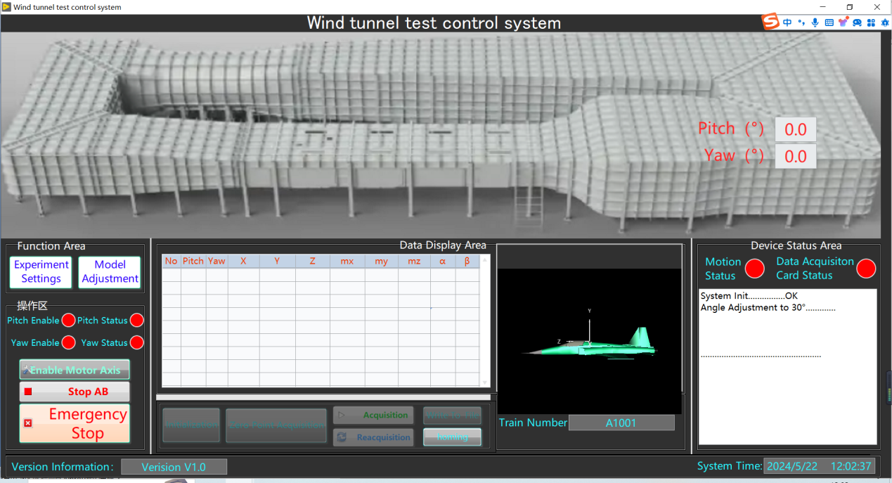 风洞试验数据采集系统可以通过网络通信,对风洞设备中的运动控制设备进行控制,并实时将运动状态进行采集和显示。可以实时对实验设备中的运动采集卡进行数据采集、显示和存储。帮助实验者更简单、快速的进行实验。