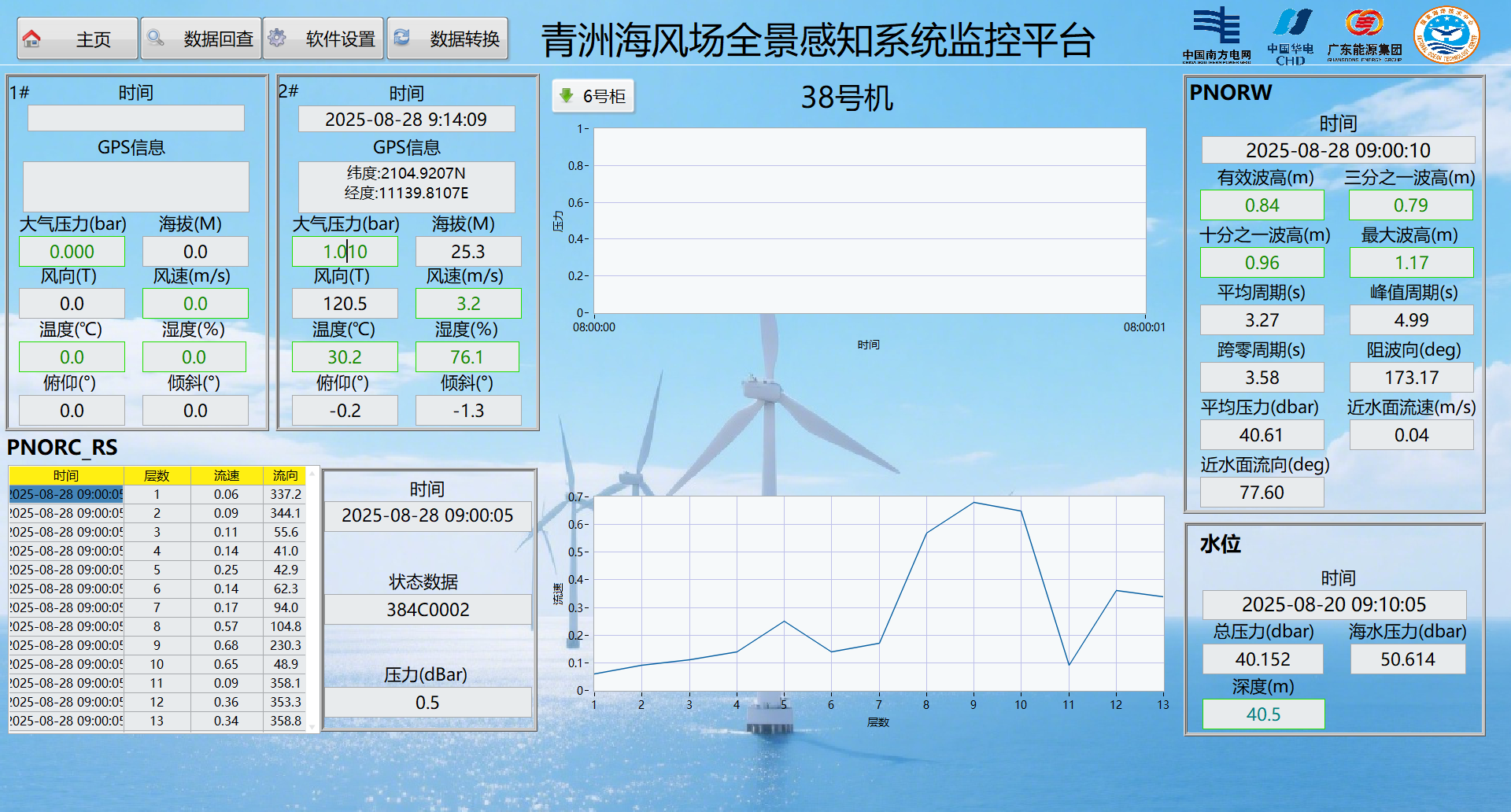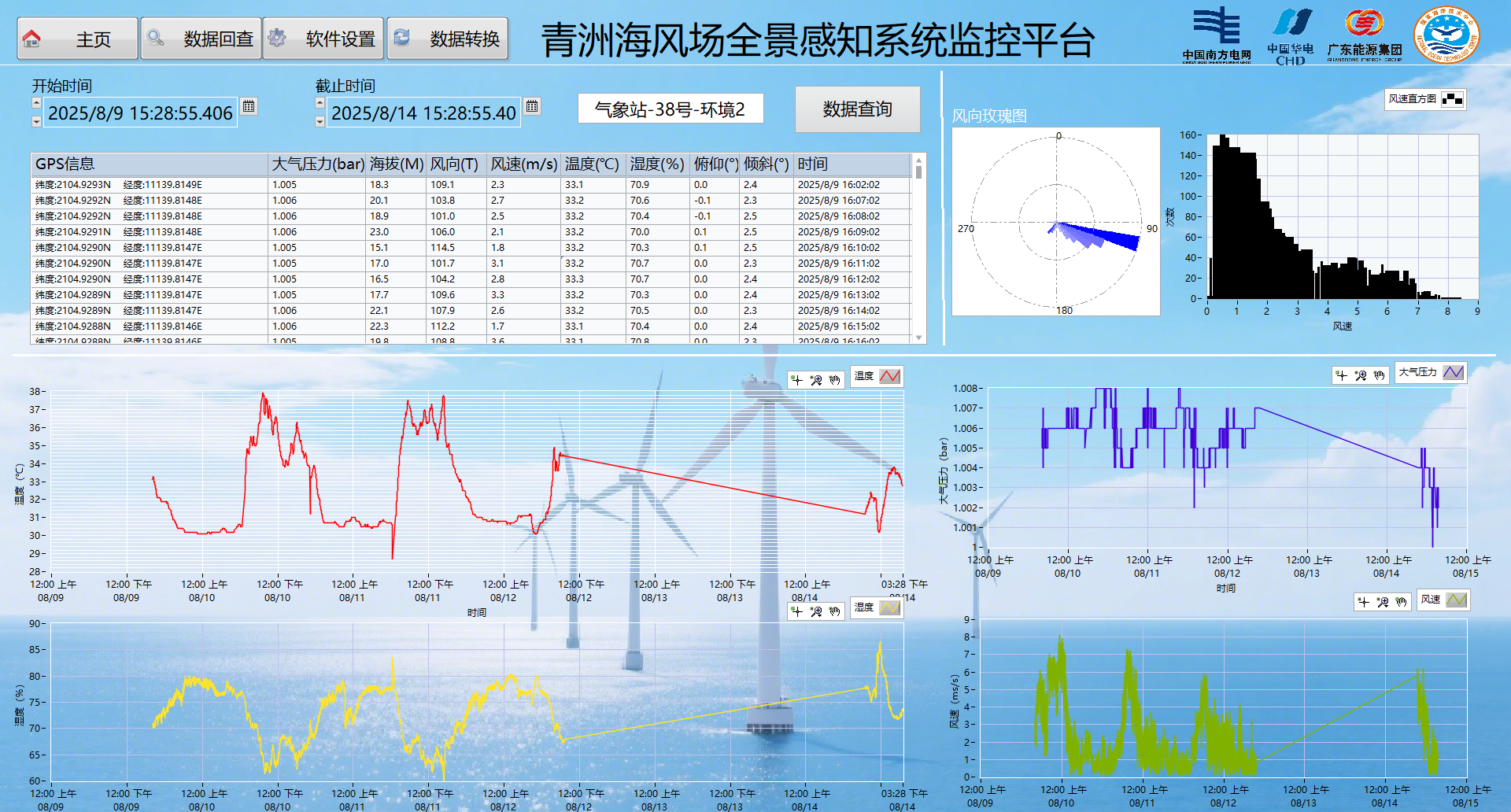 检测系统分为两大部分,海洋环境全景感知系统和数值气象预报,实时获取风电场区域范围内的风-浪-流等数据,运用成熟的大气模式提供风电场天气数值预报。